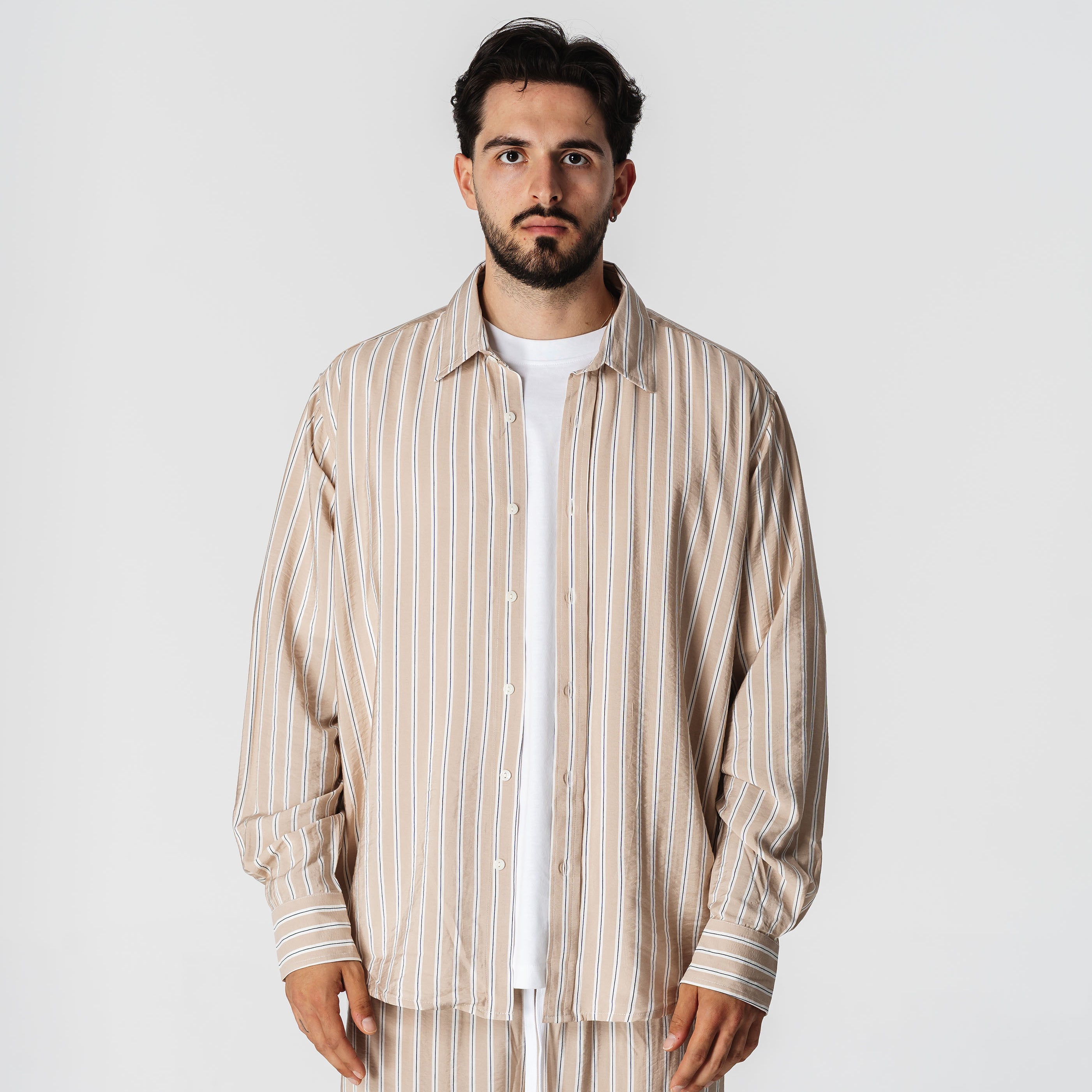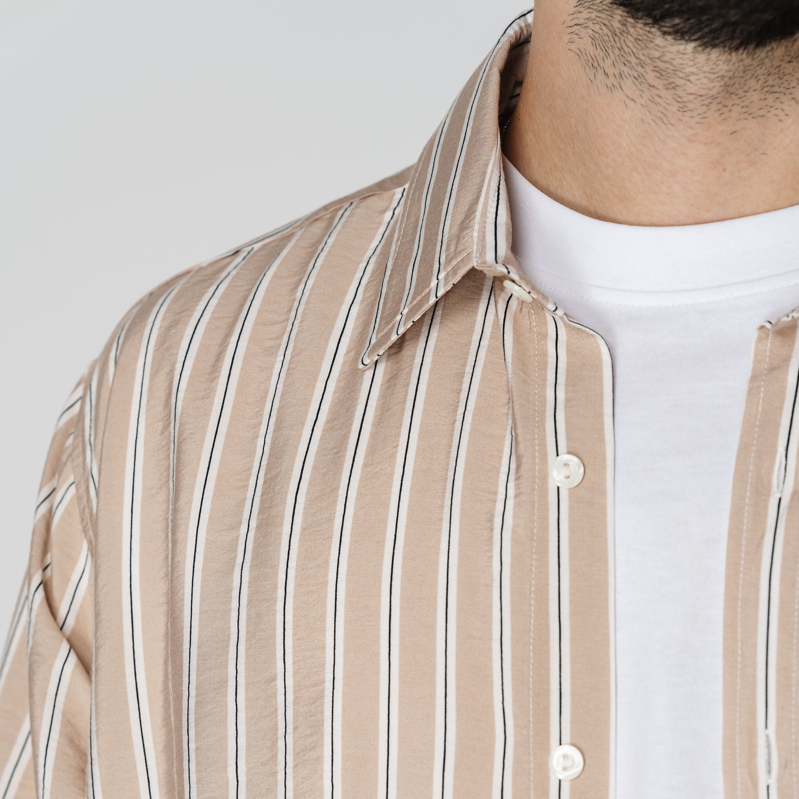 Beige Stripes Long-sleeved Shirt